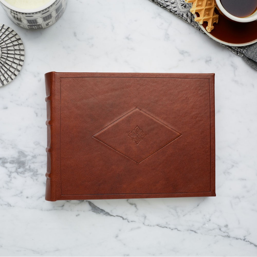 Demonstrating the finest in Italian tradition and artistry these beautiful hand bound albums are skillfully crafted within our Florentine workshop. Perfectly suited for those who appreciate keeping their special photos at hands reach or for those who have the creative flair to draw or paint, our leather albums have a nerve on the spine and are bound using the highest quality of plain ivory stock which is acid-fee and separated with acetate paper. Ideal for charcoal and water colour art, you can work directly into the book or mount finished work into it. Lovely also as a Visitor Book for that special occasion..