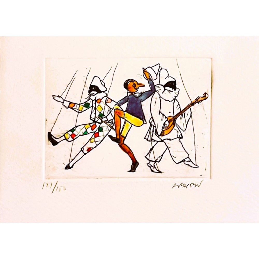 Original etching hand printed on deckled edge folded card with a star wheel press, by Florentine artist Andrea Ricceri. Envelope included. All pieces are numbered and signed.