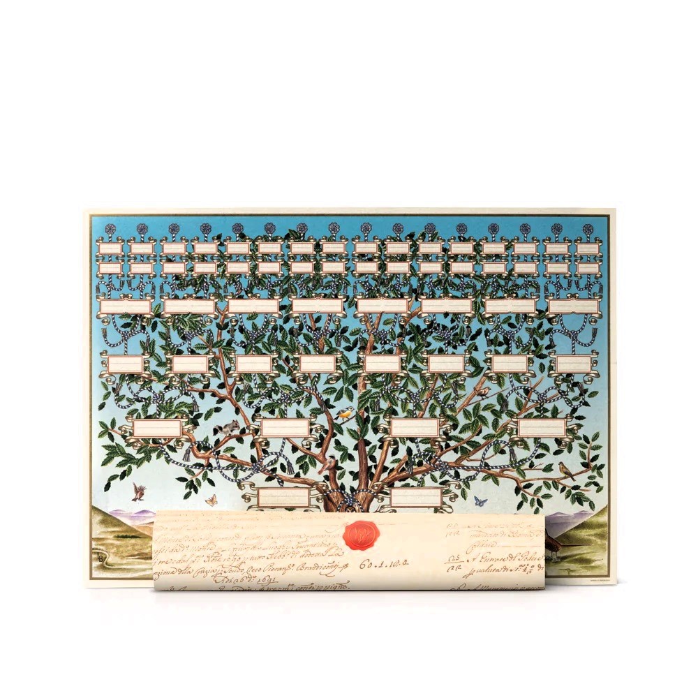 Our original IL PAPIRO design Family Tree is printed on parchment paper and measures 42x 30cm. Designed for the blood line it also includes an instructions sheet.