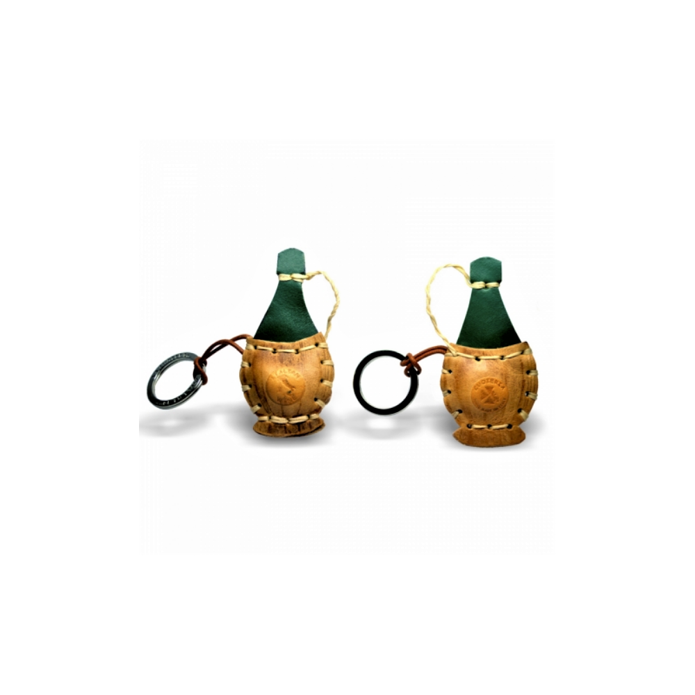 Made by hand, this quirky leather key ring in the form of a Wine Bottle is sure to delight! Measuring 9cm including ring.