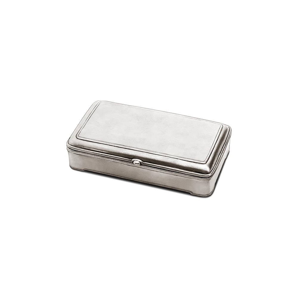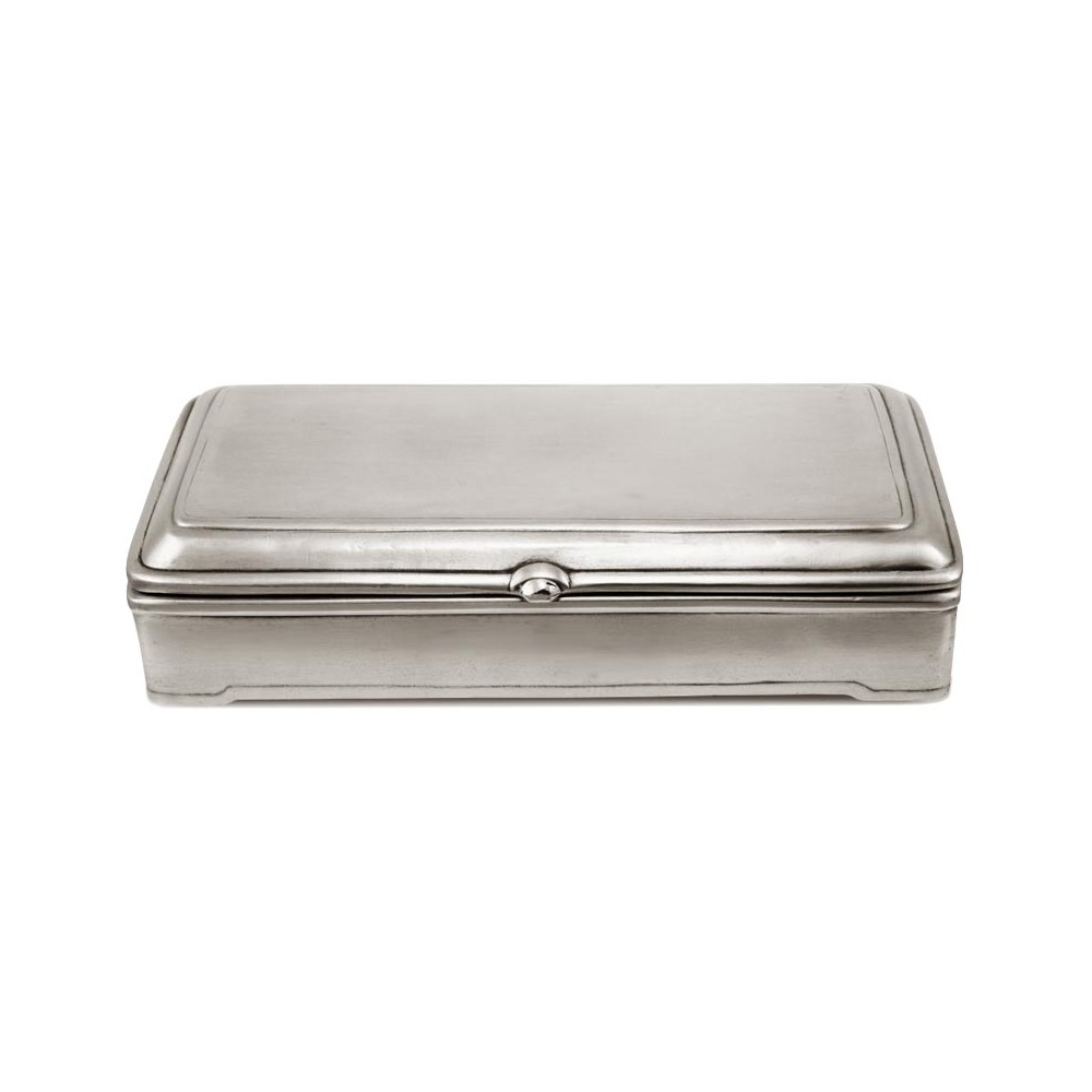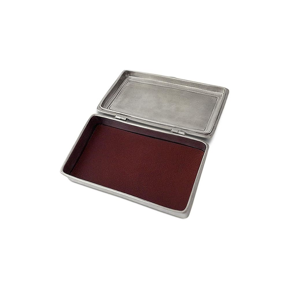 Adorn your home with this everlasting pewter Rectangular Box. Beautiful and practical, this box has an attached lid and lined with leather. Perfect for that traditional 10 year Anniversary Gift of tin!