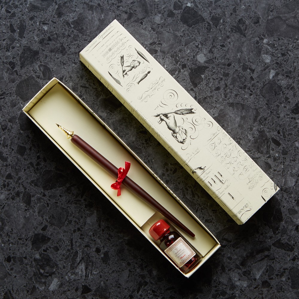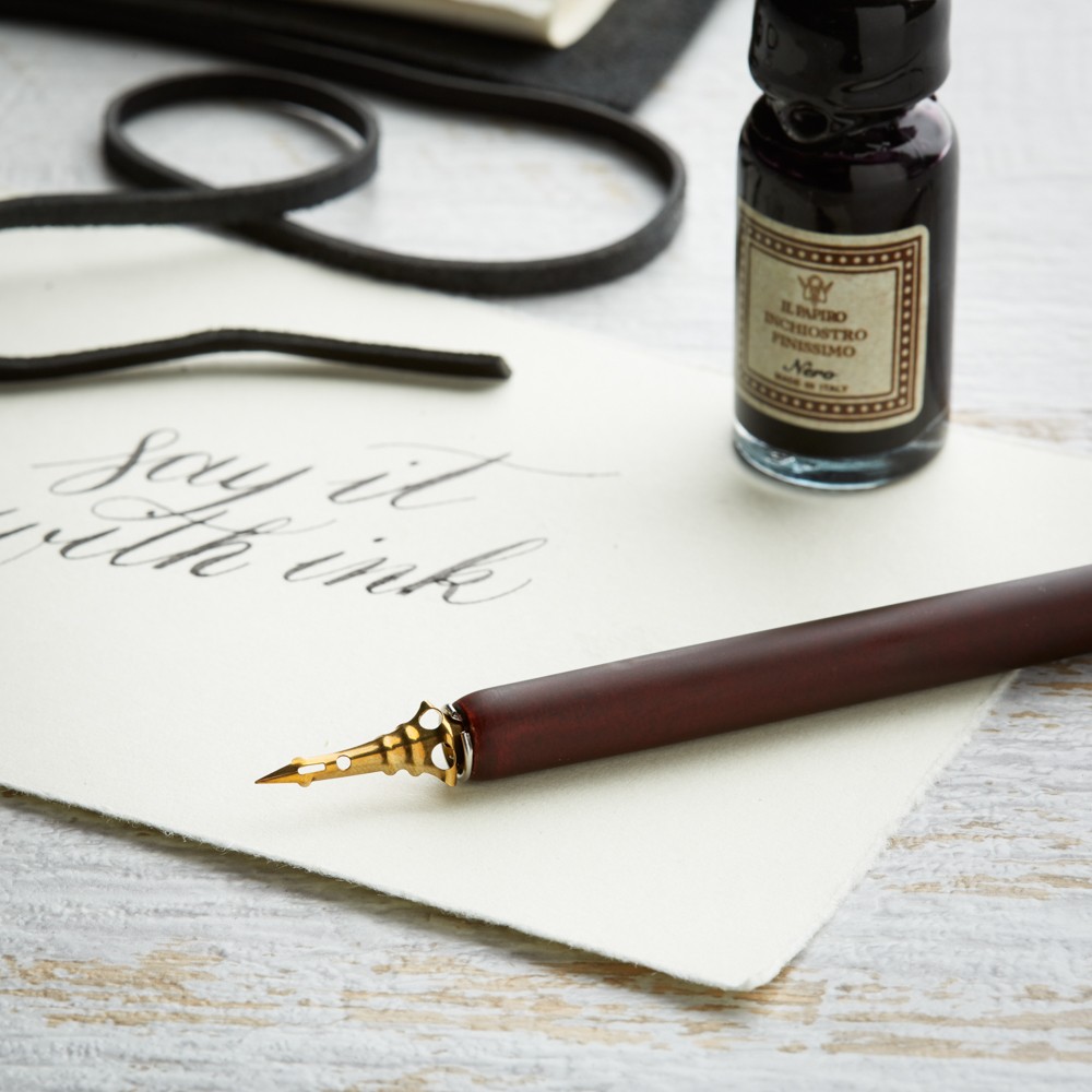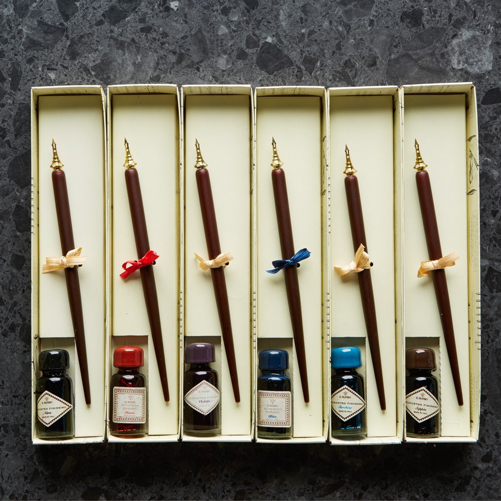 Explore your creative flair with the classical writing instrument of a wooden ink pen. Suitable for beginners and the experienced of all ages, our pens come attached with a high quality European nib that can also be interchanged. Make your selection from a vibrant choice of water-based bottles of Italian ink - beautifully presented and finished with wax.