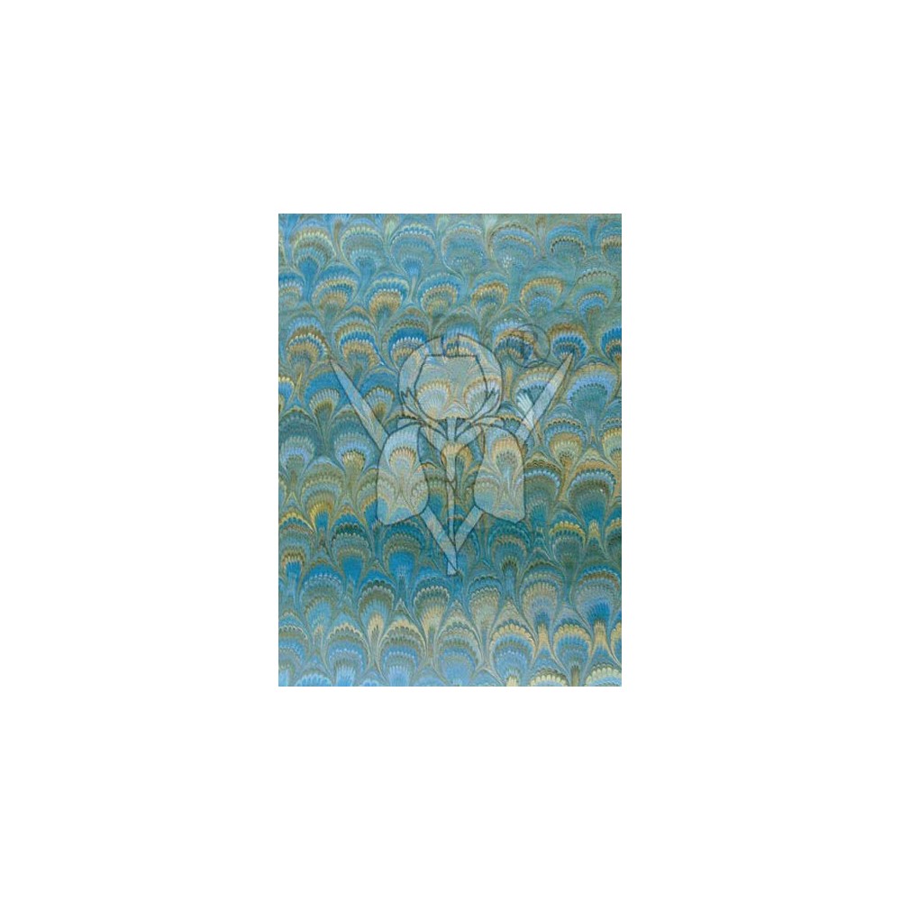 Original hand marbled paper in the Peacock Pavone design. No two sheets are the same as they are produced one at a time by hand by our Master Marbler in Florence.